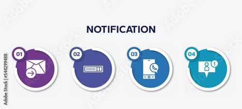 infographic element template with notification filled icons such as send mail, hdmi, night mode, friend request vector.