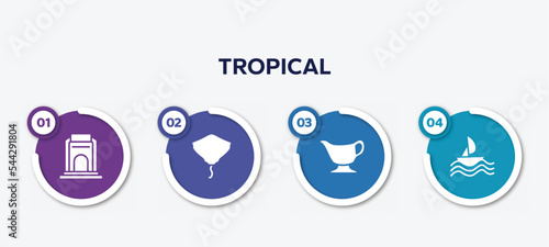 infographic element template with tropical filled icons such as voortrekker, stingray, gravy, sailing vector.