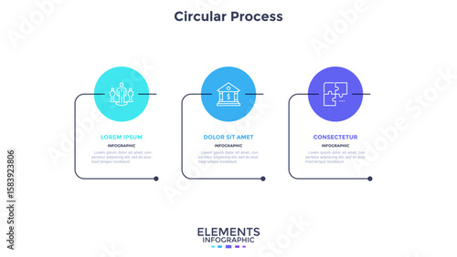 Infographic elements of circular choice template with 3 options, steps or processes. Program steps placed in horizontal row. Modern flat vector illustration for visual presentation