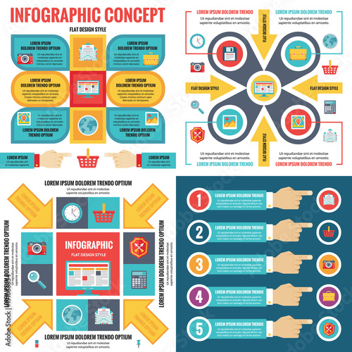 Infographic elements template business concept banners in flat design style for presentation, brochure, website and other project. Abstract infograph creative layout vector set.