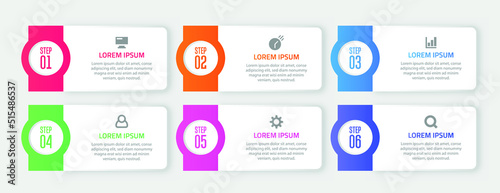 Infographic template design, Vector infographic design with 6 options or steps, Colorful gradient infographic design, Business infographic template for presentation, brochure, diagram, flow charts
