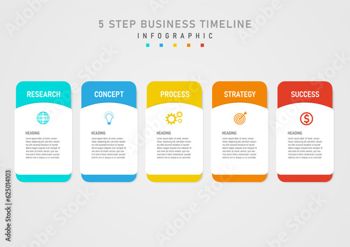 Infographic Template Simple 5 Step Business Plan for Success multi colored squares The empty space in the middle places letters and icons. gray gradient background design for product, marketing