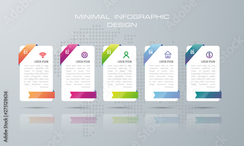 Infographic template with 5 options, workflow, process chart,Timeline infographics design vector can be used for workflow layout, diagram, annual report, web design, steps or processes. - Vector
