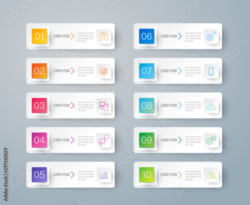 Infographics design paper art style and business icons with 10 options. Use in corporate report, marketing, annual report. Network management data screen with charts, diagrams.