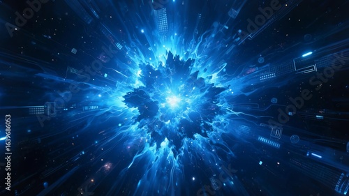 Information explosion, deep blue background, cosmic information flow, simulating the universe's explosion, high definition.