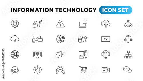 Information technology line icons collection. Big UI icon set in a flat design. Thin outline icons pack