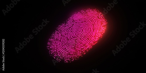 Information with source and privacy concept. Colorful fingerprint in a dark background, symbolizing identity.