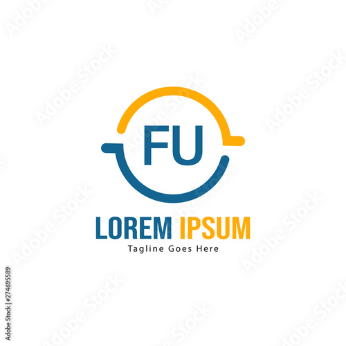 Initial FU logo template with modern frame. Minimalist FU letter logo vector illustration