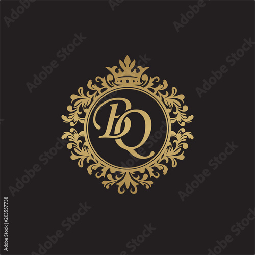 Initial letter BQ, overlapping monogram logo, decorative ornament badge, elegant luxury golden color