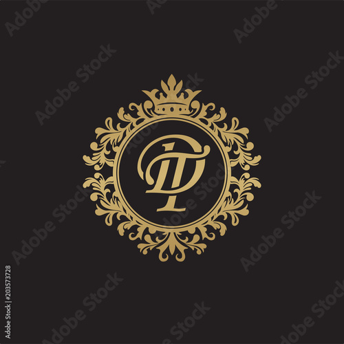 Initial letter DT, overlapping monogram logo, decorative ornament badge, elegant luxury golden color