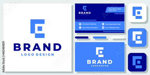 Initial Letter E Abstract Arrow Forward Up Success logo design inspiration with Layout Template Business Card