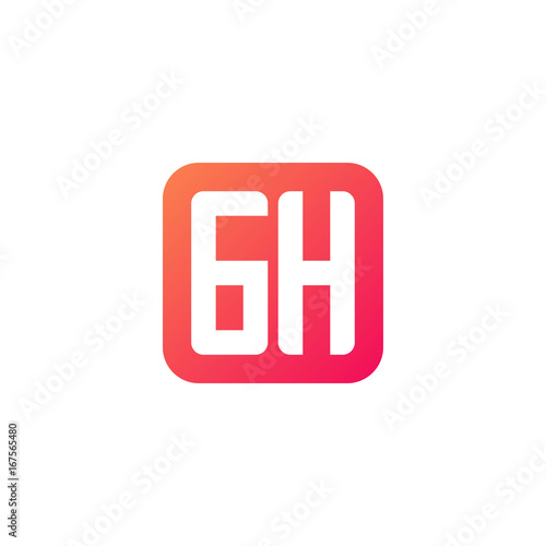 Initial letter GH, rounded letter square logo, modern gradient red color