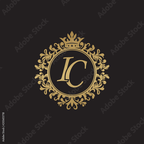 Initial letter IC, overlapping monogram logo, decorative ornament badge, elegant luxury golden color