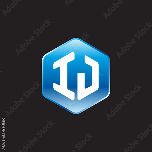 Initial letter IJ, modern glossy hexagon logo, gradient blue color on black background