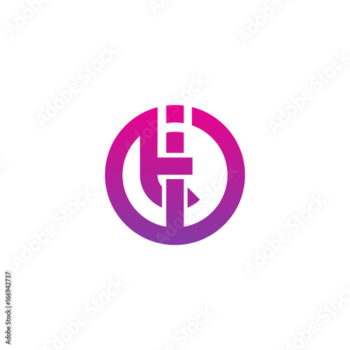 Initial letter it, ti, t inside i, linked line circle shape logo, purple pink gradient color