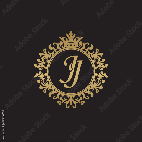 Initial letter JJ, overlapping monogram logo, decorative ornament badge, elegant luxury golden color