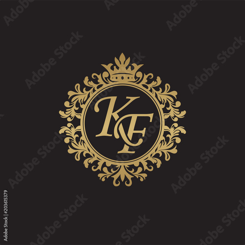 Initial letter KF, overlapping monogram logo, decorative ornament badge, elegant luxury golden color