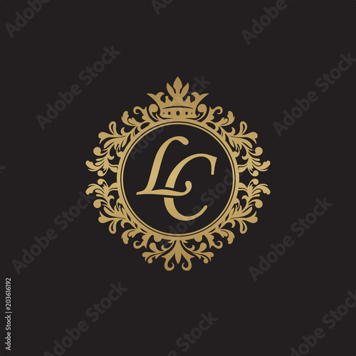 Initial letter LC, overlapping monogram logo, decorative ornament badge, elegant luxury golden color
