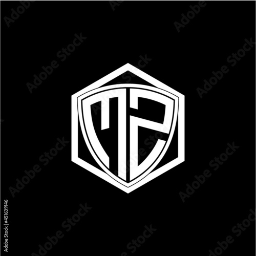 initial letter M Z shield with hexagon frame