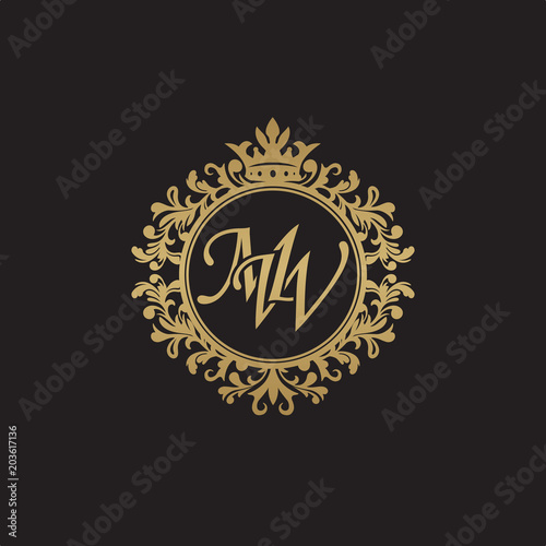 Initial letter MW, overlapping monogram logo, decorative ornament badge, elegant luxury golden color