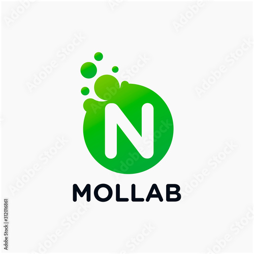 initial Letter N with molecule element. Lab, liquid, atom Design concept. Design Vector with Dots and Bubbles. perfect for technology, digital, software, network and science brand. - vector