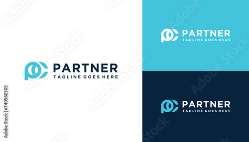 Initial Letter PC C P CP with Simple Circle Shape Line Art Logo Design