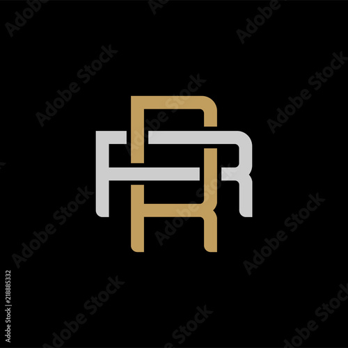 Initial letter R and R, RR, overlapping interlock logo, monogram line art style, silver gold on black background