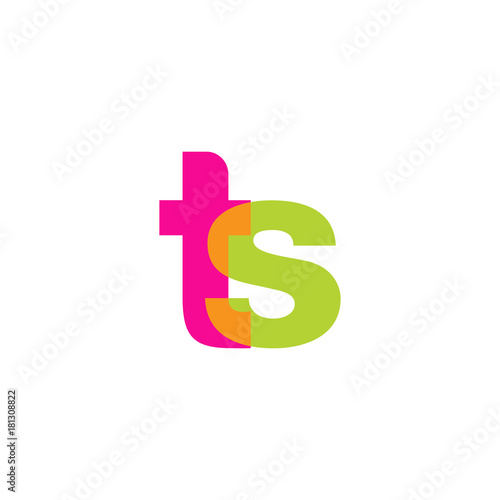 Initial letter ts, overlapping transparent lowercase logo, modern magenta orange green colors