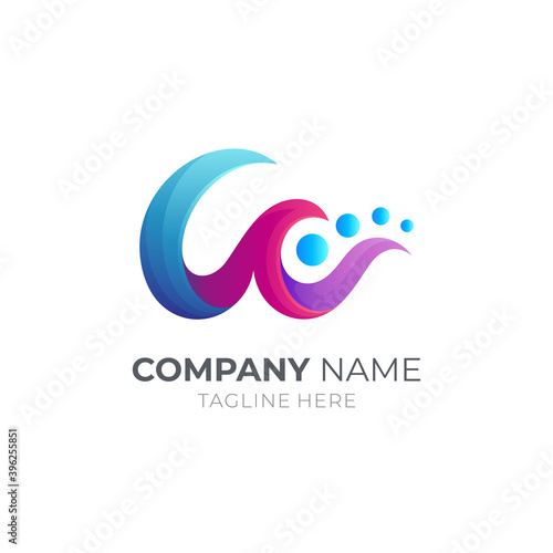 Initial letter W with wave, modern 3d logo concept in gradient blue and purple color