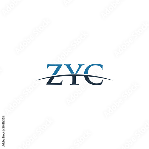 Initial letter ZYC, overlapping movement swoosh horizon logo company design inspiration in blue and gray color vector