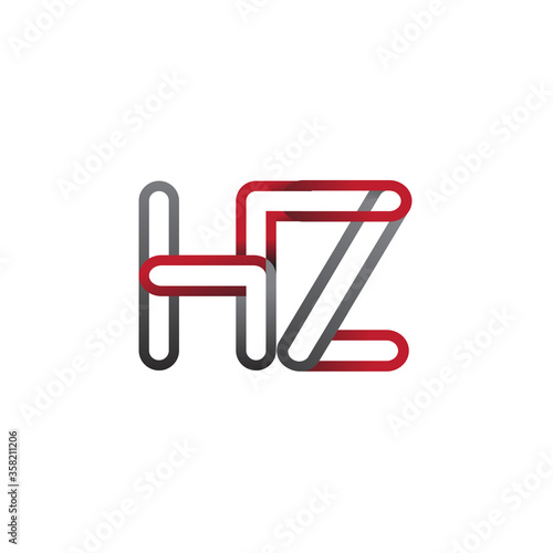 initial logo letter HZ, linked outline red and grey colored, rounded logotype