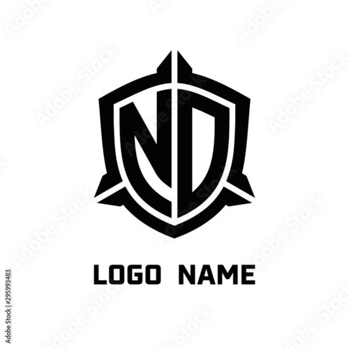 initial NO letter with shield style logo template vector. shield shape black monogram logo