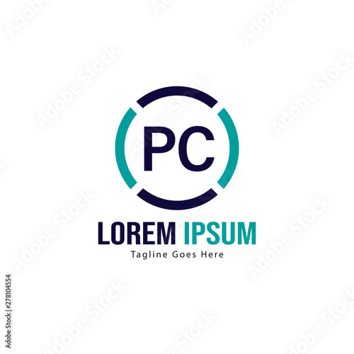 Initial PC logo template with modern frame. Minimalist PC letter logo vector illustration