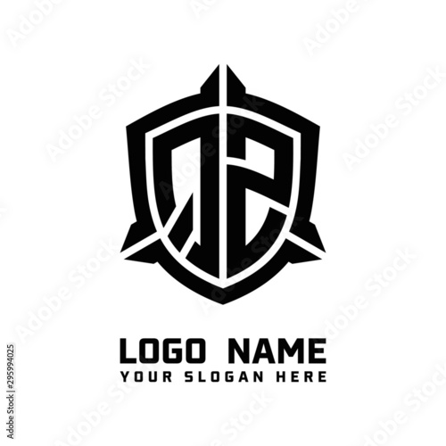 initial QZ letter with shield style logo template vector. shield shape black monogram logo