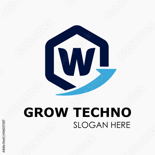 Initial W Letter in Hexagon Shape with Growth Arrow Upward Logo Idea Template