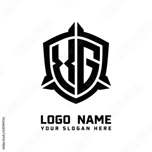 initial XG letter with shield style logo template vector. shield shape black monogram logo