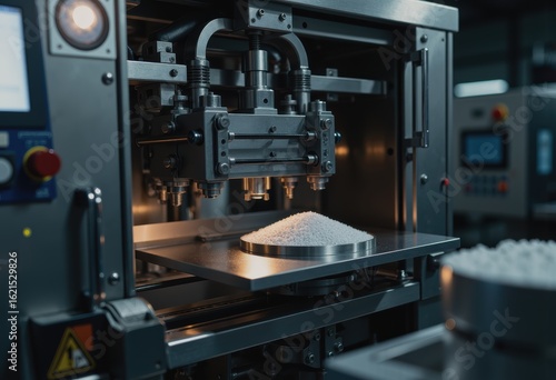 Injection molding machine with heated barrel and plastic pellets ready for processing