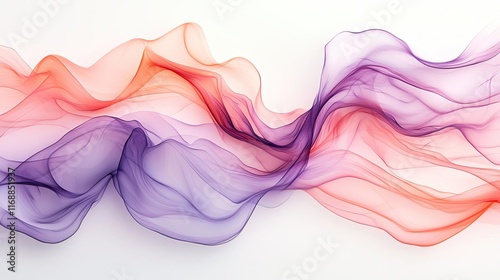 Ink abstract background idea. A vibrant wave of flowing fabric in shades of purple, red, and orange on a white background.