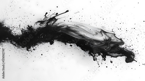 Ink Spill Abstract: An artistic black ink spill creates a captivating abstract design, with dynamic splashes and fluid textures on the paper.