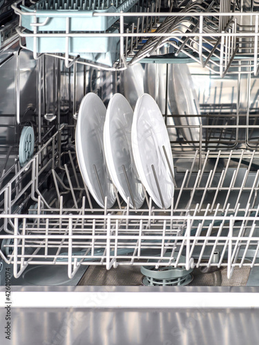 Inner space of dishwasher machine.