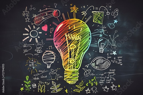 innovation, creativity, light bulb, ideas, colorful, glow, sketches, brainstorming, concept, inspiration, thinking, invention, intelligence, strategy, planning, education, science, technology, mathema
