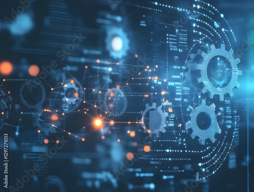Innovation in Motion: A digital representation of interconnected gears and circuitry, symbolizing progress and technological advancement.