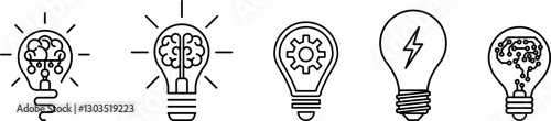 Innovation symbol icon set. Light bulb and cog, brain inside. Light Bulb line icon vector, isolated on white background. Idea sign. Inspiration icon vector illustration.