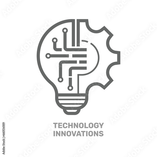 Innovation Technology icon. Light bulb and cog inside, innovation symbol. Vector illustration. EPS 10