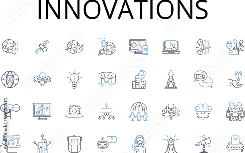 Innovations line icons collection. Advancements, Progressions, Improvements, Developments, Breakthroughs, Advantages, Enhancements vector and linear illustration. Generative AI