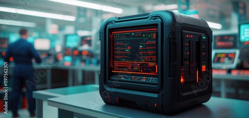 Innovative 3D printer creating a futuristic product in a high-tech lab with engineers monitoring the progress innovative creativity