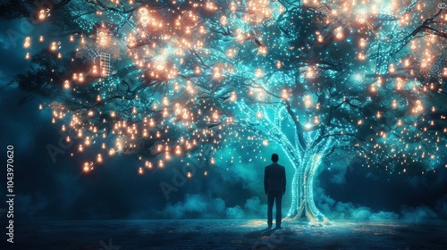 Innovative Business Growth and Sustainability Concept with Glowing Tree of Ideas