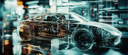 Innovative car production line showcasing advanced technology and design in a dynamic automotive factory environment