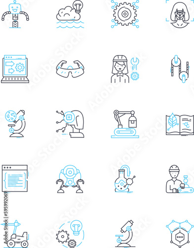 Innovative machinery linear icons set. Automation, Robotics, Precision, Cutting-edge, Futuristic, Advanced, Efficiency line vector and concept signs. Creative,Ingenious,Novelty outline illustrations