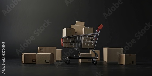 Innovative retail presentation: Cinematic shot of small shopping cart with unique house box